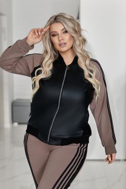 Бомбер на блискавці зі стійкою комірцем — стильний та практичний. Модель доповнена кишенями та манжетом по низу з ребани, що забезпечує гарну посадку. Контрастні вставки з еко шкіри та лампаси додають образу сучасного та спортивного стилю.