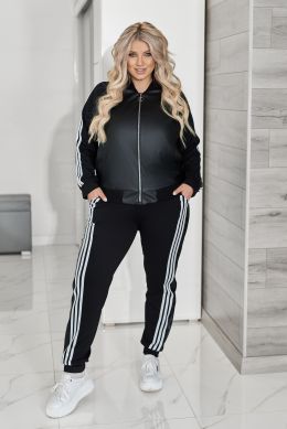 Сучасний та комфортний костюм із тканини двухнитка гарної якості в поєднанні з еко шкірою. Тканина приємна до тіла, добре тримає форму та виглядає дуже ефектно.