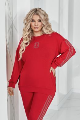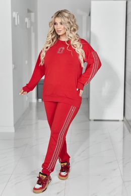 Комфортний та ефектний костюм із двухнитки чудової якості, прикрашений лампасами та візерунком " замок" зі страз.