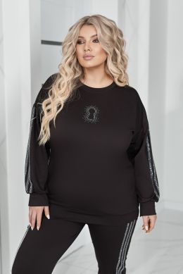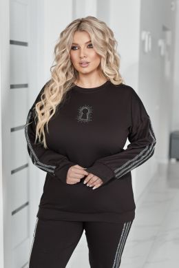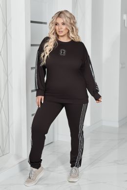 Комфортний та ефектний костюм із двухнитки чудової якості, прикрашений лампасами та візерунком " замок" зі страз.