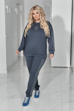 Комфортний та ефектний костюм із двухнитки чудової якості, прикрашений лампасами та візерунком " замок" зі страз.