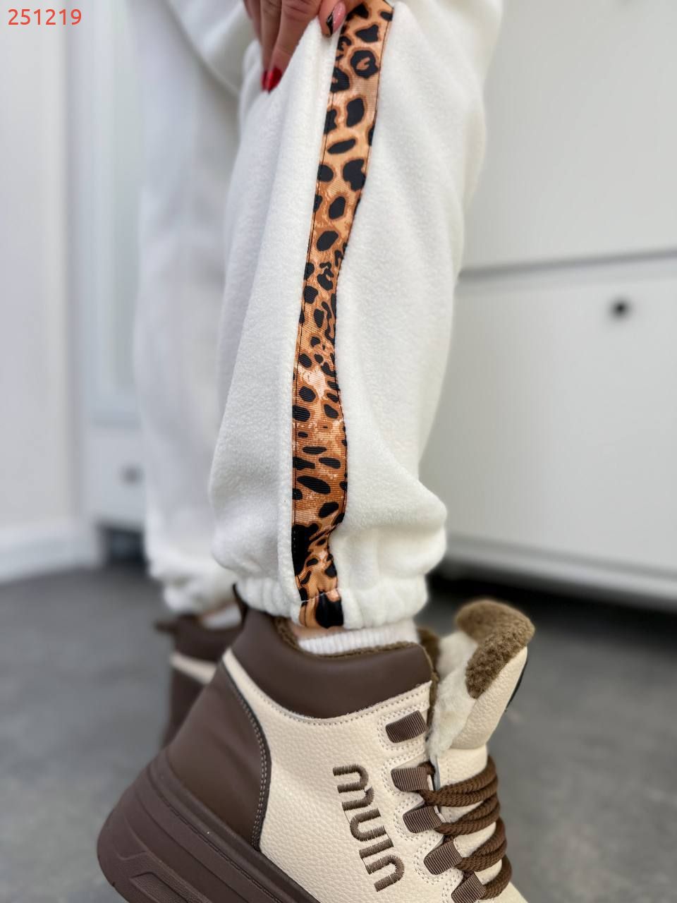 Тканина: фліс Полар, гарної якості двухсторнонній, дуже теплий та зручний, висока посадка штанів, оздоблений леопард , тягнеться до 4 см