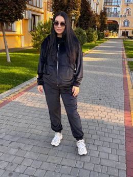 Бомбер з капюшоном на змійці з карманами, штани висока посадка з карманами, низ манжет на резинці