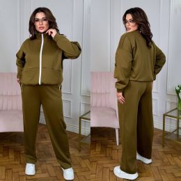 Стильний костюм трійка : кофта + футболка + штани . Футболка прямого покрою , кофта з стійкою на блискавці , з кишенями , низ на фіксаторі . Штани з високою посадкою , пояс на гумці , з бічними кишенями .
