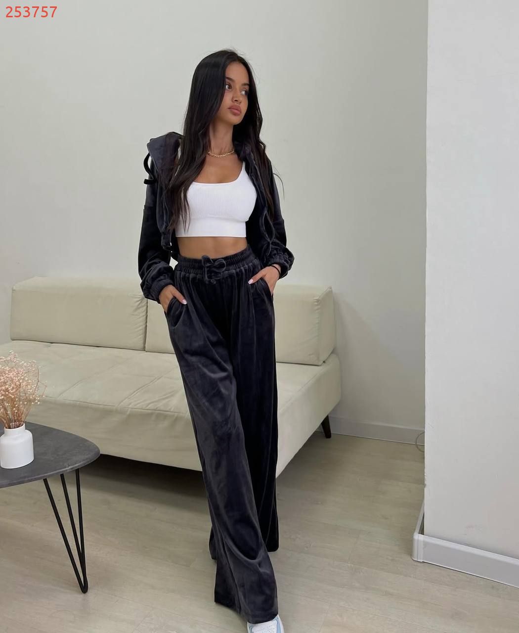 Дуже практичний костюм з кофти, штанів та топу - ідеально до будь-якого сезону. Приємна мʼяка тканина. Кофта на змійці та з капюшоном. Штани на резинці та мають кармани. Топ на бретелях, тягнеться по фігурі.