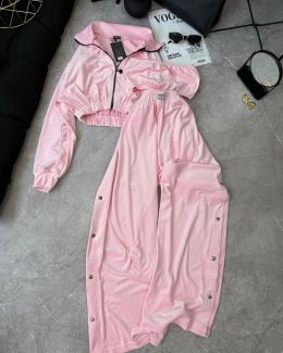 Ідеальний костюм з приємного мʼякого велюру. Складається з кофти, топу бандо та штанів на закльопках по боках. Кофта йде вкорочена на змійці, з кантом. Топ на резинці.