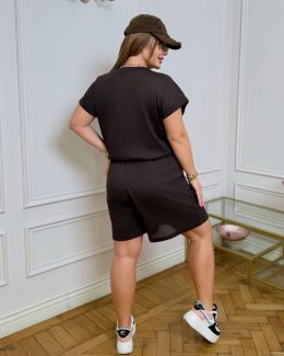 Костюм з трикотажу стрейч «вафелька»: футболка з манжетами на рукавах та Акс + шорти з високою посадкою на гумці, з кішкнями у бічних швах та шнурком на поясі