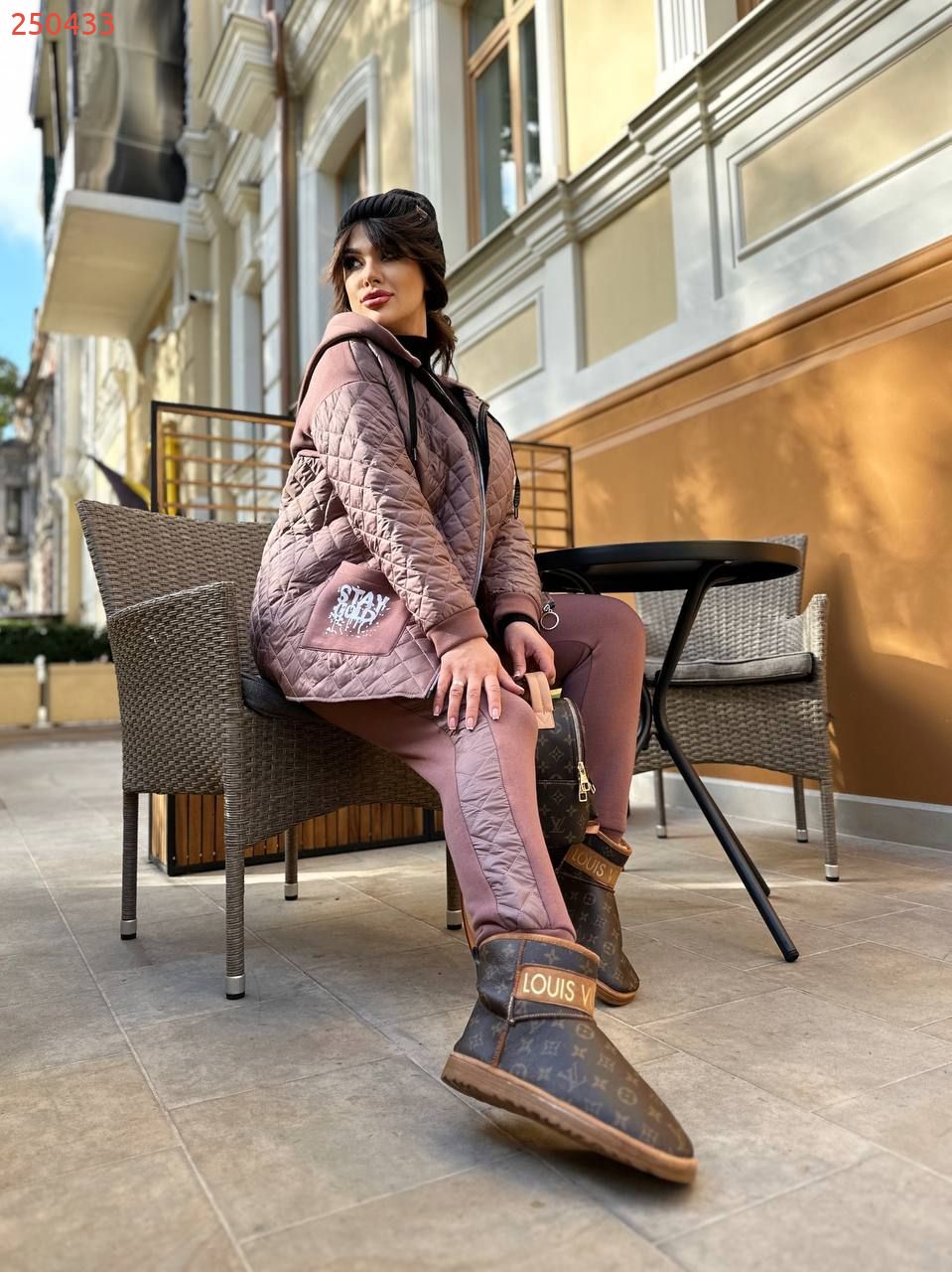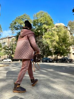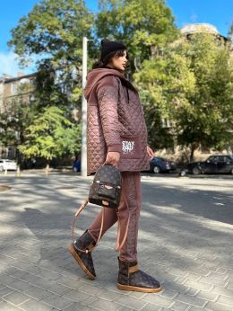 58-60 Довжина кофти перед – 74 см, довжина кофти ззаду-84 см, довжина рукава т горла – 66 см, Ог-142 см, довжина штанів-103 см, Про-146 см, гумка-130 см.
