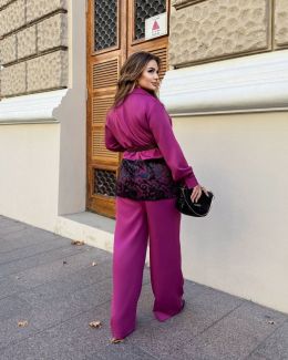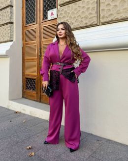 Стильний жіночий костюм .Подовжений піджак, прямого крою, з класичним коміром .Широкі штани. Цей костюм відмінно підійде для повсякденних, ділових та стильних образів, поєднуючи комфорт та елегантність