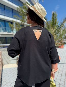 Сорочка з V-подібним вирізом та гудзиками по центру. Рукави широкі та вкорочені, довжиною до ліктя. Крій вільний, що забезпечує комфорт та легкість рухів.