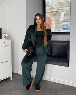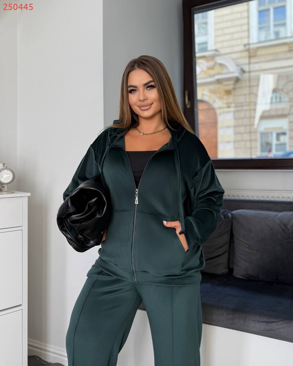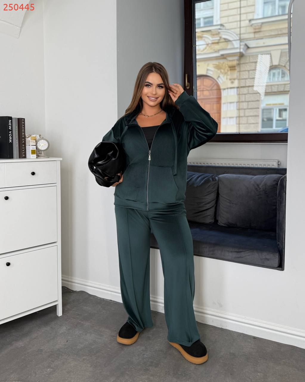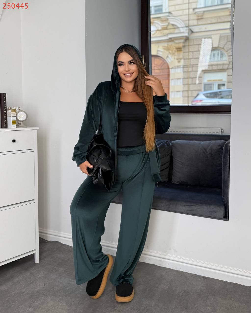 Довжина кофти 65 см. Довжина штанів по зовнішньому/внутрішньому шву 103/76 см. Велюр добре тягнеться.