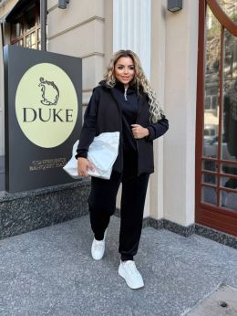 Пояс на резинці+ канат, манжет знизу штанів, рукав реглан, для зручності є затяжка в кофті, капюшон не знімається, блискавка робоча