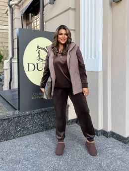 Пояс на резинці+ канат, манжет знизу штанів, рукав реглан, для зручності є затяжка в кофті, капюшон не знімається, блискавка робоча