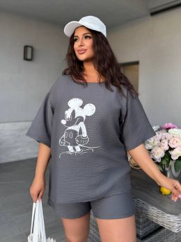 Тканина легка та мʼяка, для літа в самий раз, пояс шортів на резинці, глибокі кишені, футболка оверсайз