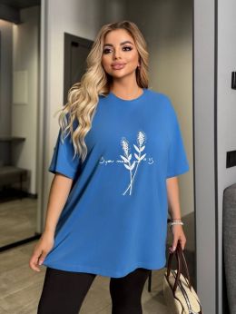 Футболка оверсайз, прикрашена стразами, лосини без кишень, пояс резинка