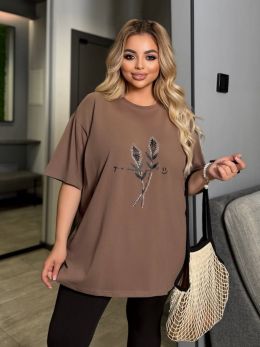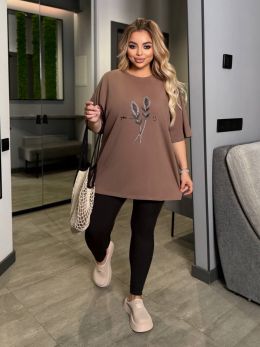 Футболка оверсайз, прикрашена стразами, лосини без кишень, пояс резинка