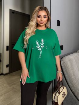 Футболка оверсайз, прикрашена стразами, лосини без кишень, пояс резинка