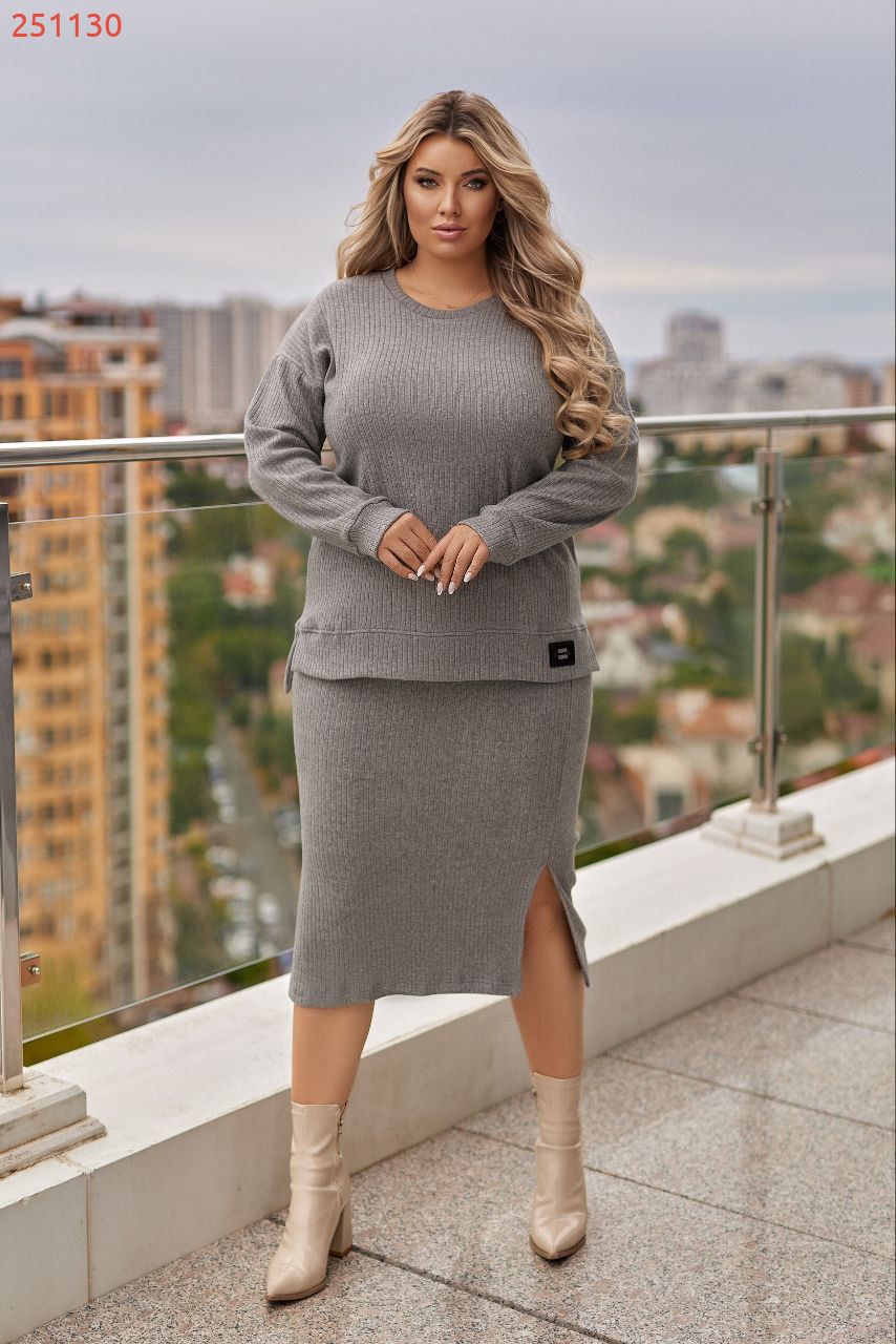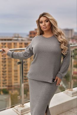 Елегантний крій спідниці підкреслює силует, спідниця на резінці, має розрізи по боковому шву . Перед светра коротший зад довший.