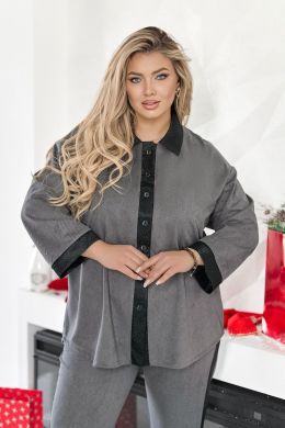 Стильний жіночий костюм – двійка. Сорочка у вільному стилі,пряма , вільна. З комірцем застібається на гудзики. Низ сорочки спереду та ззаду злегка закруглений, додаючи образу романтики.
