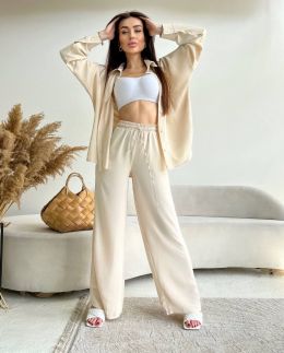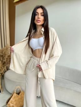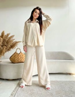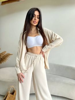 Хіт продажу цього сезону - стильні костюмчики з легкої та приємної тканини, дуже зручний та практичний, сорочка на ґудзиках, штани кльош на високій посадці