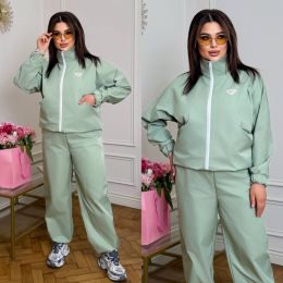 Довжина штанів : 108 см Штани з високою посадкою , пояс на гумці , бічні кишені , низ на гумці . Кофта прямого покрою з кишенями , з коміром стійка , на блискавці , низ на фіксаторі , рукав на гумці .