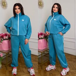 Довжина штанів : 108 см Штани з високою посадкою , пояс на гумці , бічні кишені , низ на гумці . Кофта прямого покрою з кишенями , з коміром стійка , на блискавці , низ на фіксаторі , рукав на гумці .