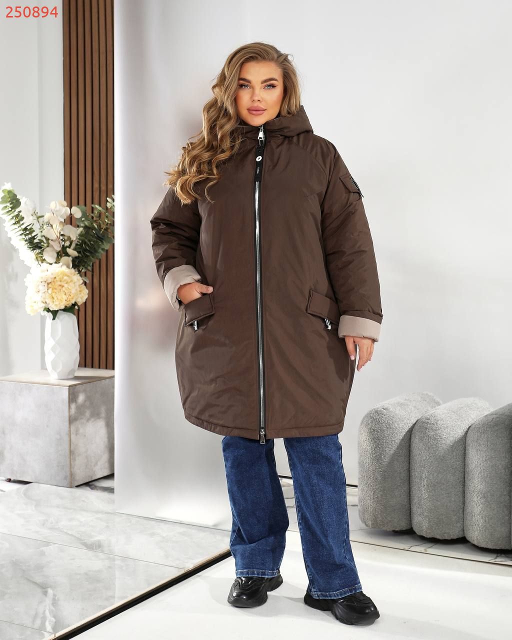 56-58: ог 136 см, ос 150 см, обхват рукава 54 см