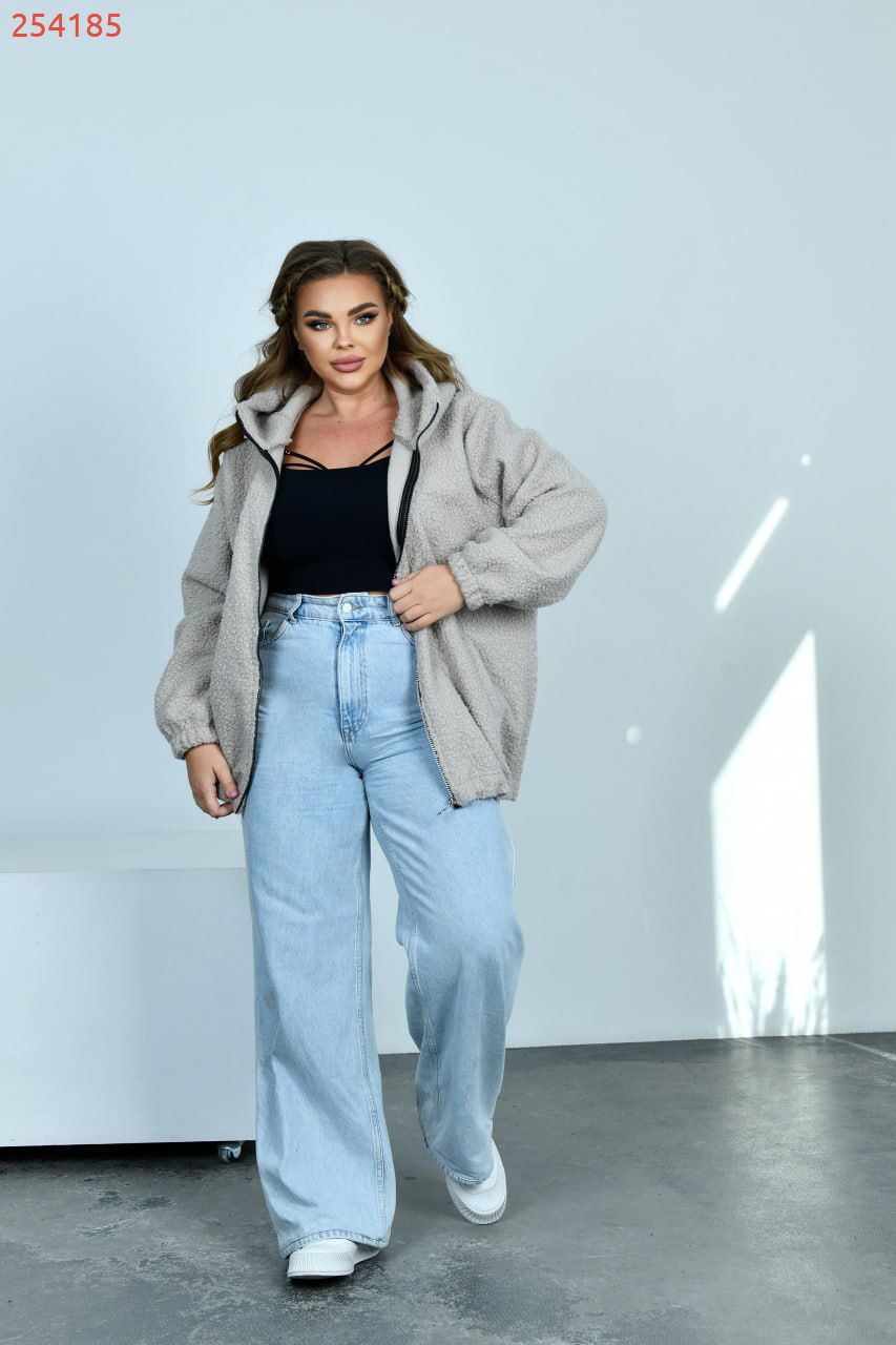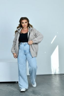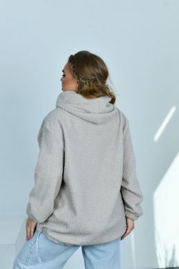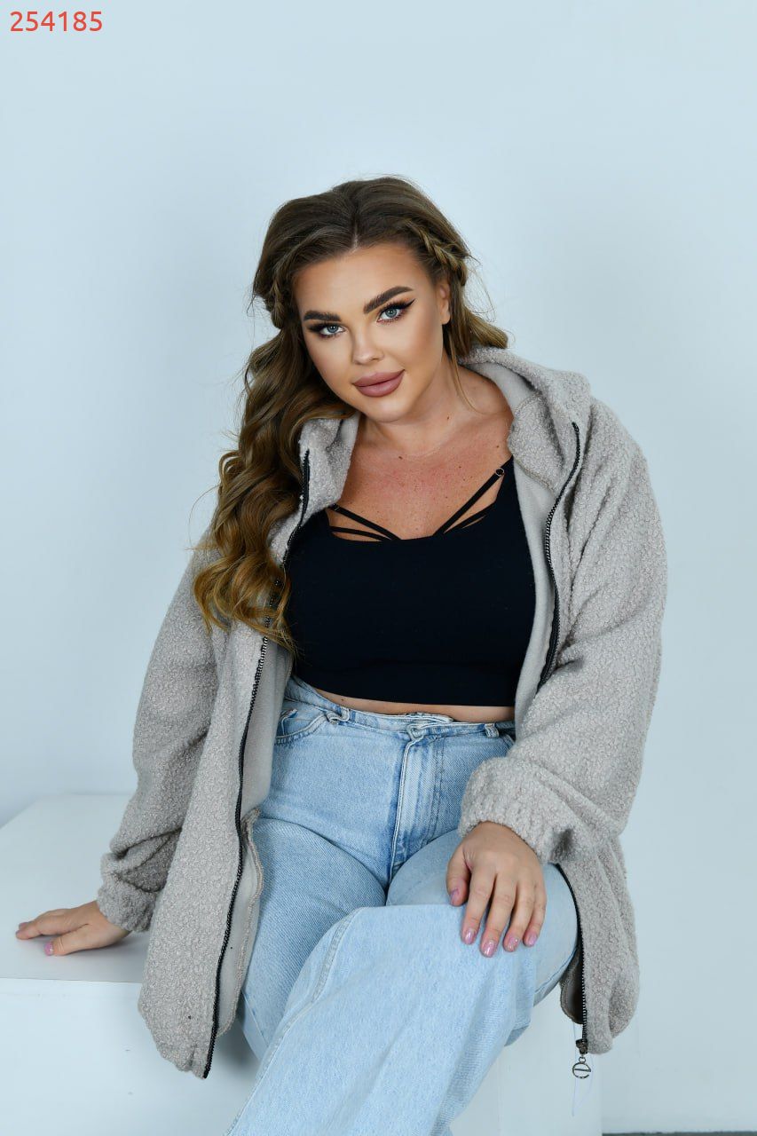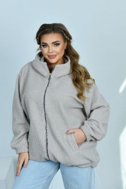 Стильна куртка вільного силуету із якісного буклє «баранець» ( розтяжність мінімальна). Лінія плеча спущена, рукав на резинці. Капюшон зі стійкою, щоб краще захищати горло під час вітряної погоди. Куртка застібається на блискавку. Низ на кулісці з резинкою та стопорами, щоб можна було затягувати. Попереду оброблені кишені. Без підкладки.