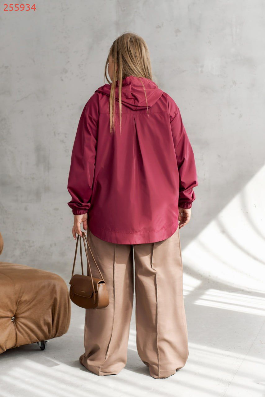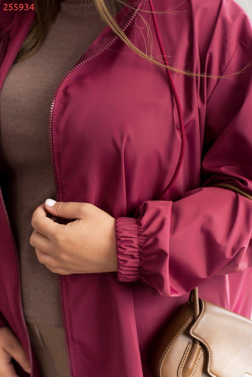 Наша новинка куртка-вітровка – твій надійний захист від будь-якої непогоди! Легка та без підкладки, вона ефективно оберігає від вітру, туману та невеликого дощу, залишаючи тебе сухою та у комфорті. Капюшон із люверсами та регульованим шнурком, довгі рукави з еластичними манжетами і занижена лінія плеча – все продумано для зручності рухів. Дві накладні кишені спереду та застібка-блискавка роблять куртку неймовірно практичною для повсякденного використання. Стильна, функціональна і завжди готова до будь-яких пригод! Пояс НЕ входить в комплект.