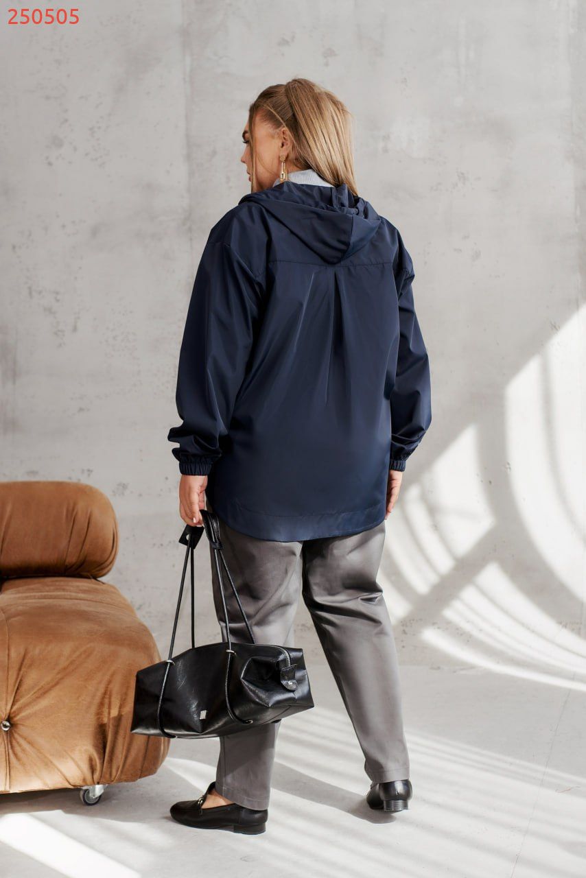 Наша новинка куртка-вітровка – твій надійний захист від будь-якої непогоди! Легка та без підкладки, вона ефективно оберігає від вітру, туману та невеликого дощу, залишаючи тебе сухою та у комфорті. Капюшон із люверсами та регульованим шнурком, довгі рукави з еластичними манжетами і занижена лінія плеча – все продумано для зручності рухів. Дві накладні кишені спереду та застібка-блискавка роблять куртку неймовірно практичною для повсякденного використання. Стильна, функціональна і завжди готова до будь-яких пригод! Пояс НЕ входить в комплект.
