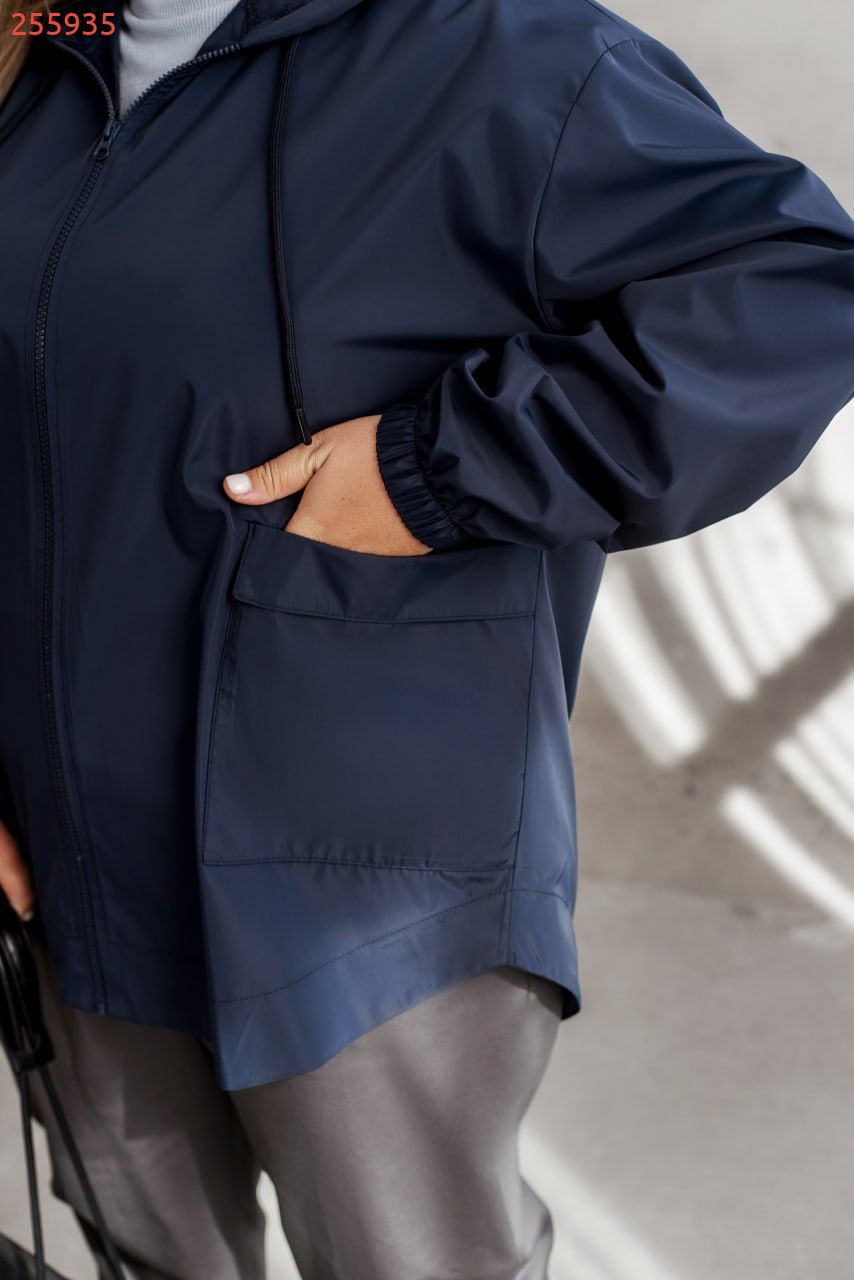 Наша новинка куртка-вітровка – твій надійний захист від будь-якої непогоди! Легка та без підкладки, вона ефективно оберігає від вітру, туману та невеликого дощу, залишаючи тебе сухою та у комфорті. Капюшон із люверсами та регульованим шнурком, довгі рукави з еластичними манжетами і занижена лінія плеча – все продумано для зручності рухів. Дві накладні кишені спереду та застібка-блискавка роблять куртку неймовірно практичною для повсякденного використання. Стильна, функціональна і завжди готова до будь-яких пригод! Пояс НЕ входить в комплект.