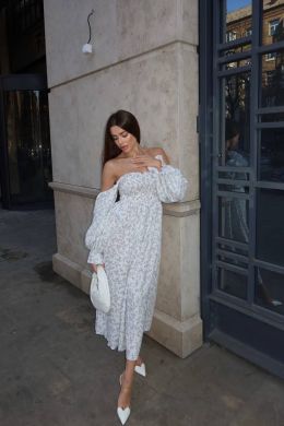 Ніжна та дуже жіночна сукня, яка створює легкий і романтичний образ. Завдяки еластичній вставці «машинка-резинка» у верхній частині ідеально сідає по фігурі та підкреслює силует.