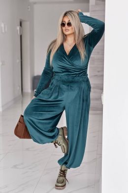 Стильний жіночий костюм у трендових відтінках, що поєднує комфорт і витончену жіночність. Виконаний з м’якого, приємного до тіла велюру з легким благородним блиском, який красиво переливається при русі.