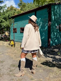 58-60 Об'єм грудей - 132 см, Висота піджака - 80 см, Довжина рукава - 60 см, Об'єм талії -132 см, Об'єм стегон - 132 см.