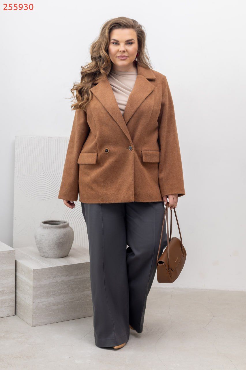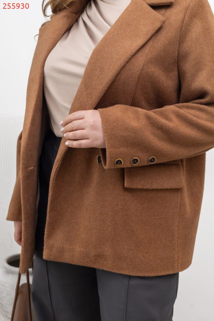 Стильне жіноче пальто, яке поєднує лаконічність і бездоганну посадку. Модель прямого, злегка вільного крою, що м’яко лягає по фігурі та не обмежує рухів. Довжина до середини стегна – універсальний варіант, який легко вписується як у повсякденні, так і більш зібрані образи. Пальто має класичний відкладний комір із лацканами, що формує елегантний силует і додає структурності. Застібка на два ґудзики, розташовані в один ряд, підкреслює мінімалістичний дизайн. Лінія плеча акуратна, рукави прямі, повної довжини – виглядають стримано та сучасно. Спереду розташовані прорізні кишені з клапанами, які додають практичності та завершеності виробу. Тканина щільна, приємна на дотик, добре тримає форму та забезпечує комфорт у прохолодну погоду. Внутрішня частина виконана з підкладкою для додаткової зручності. Пальто легко комбінується з базовими речами – від класичних брюк до деніму, створюючи стильні, стримані образи на кожен день. Пояс НЕ входить в комплект.