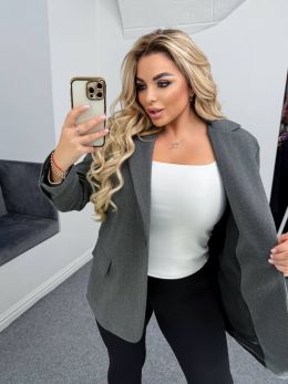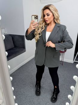 Жакет застібається на ґудзики, з боків робочі кишені , на рукавах розрізи з ґудзиками. По спинці по низу два розрізи.