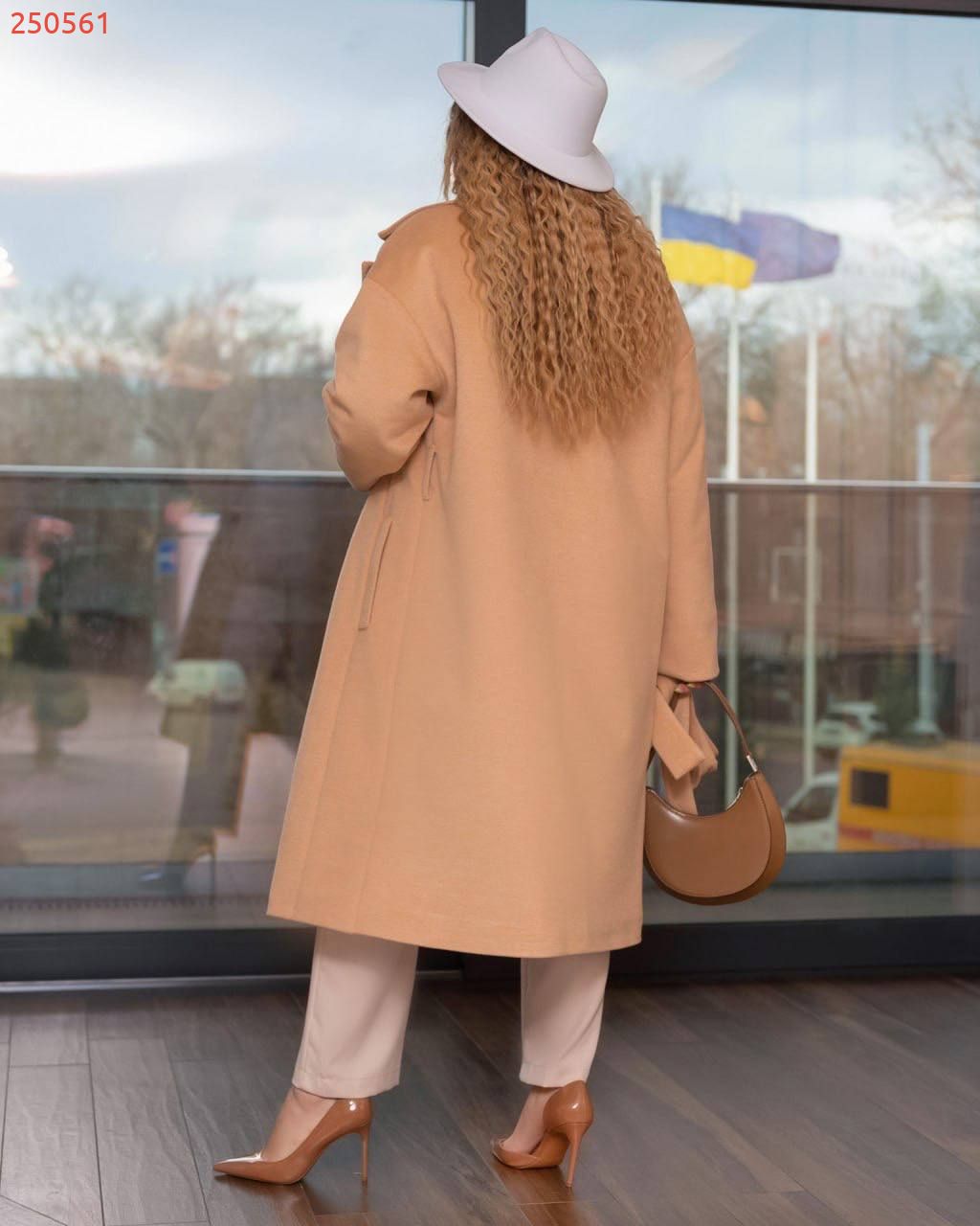 Тканина: шерсть 55%, віскоза 25%, акрил 20%, (легкий ворс, не скатується). Підкладка стьобана на синтепоні 80 щільності. Довжина виробу 115 см.