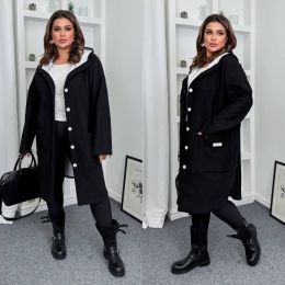 Пальто - Кардиган з бічними кишенями , з капюшоном, на ґудзиках .