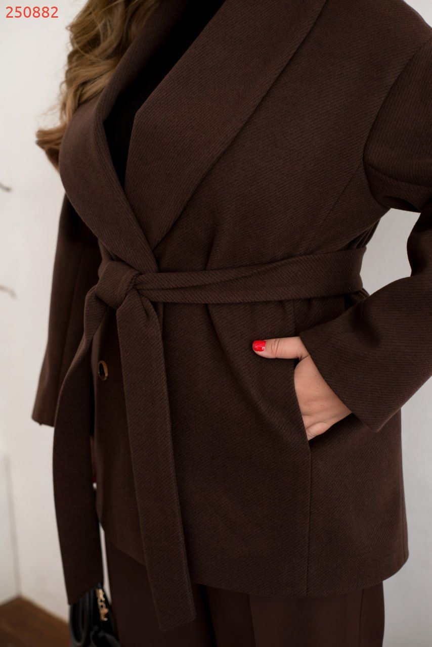 Справжня знахідка для тих, хто цінує елегантність і комфорт. Наше нове укорочене двобортне пальто з кашеміру супер якості. Виготовлене з м’якого, щільного кашеміру, воно відмінно захищає від прохолоди, даруючи відчуття затишку. Врізні кишені додають функціональності, а класичний комір підкреслює стильність моделі. У комплекті йде текстильний пояс, який дозволяє підкреслити талію, створюючи витончений силует. Має підкладку. Це пальто стане вашим універсальним вибором для осінніх і весняних образів, підкреслюючи вашу індивідуальність та бездоганний смак!