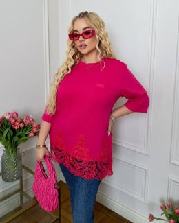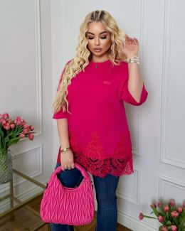 упер стильна футболка в стилі OVER, подовжена! З турецьким красивим мереживом! В цьому сезоні тренд на такі круті речі з мереживом ( мереживо може мінятися)