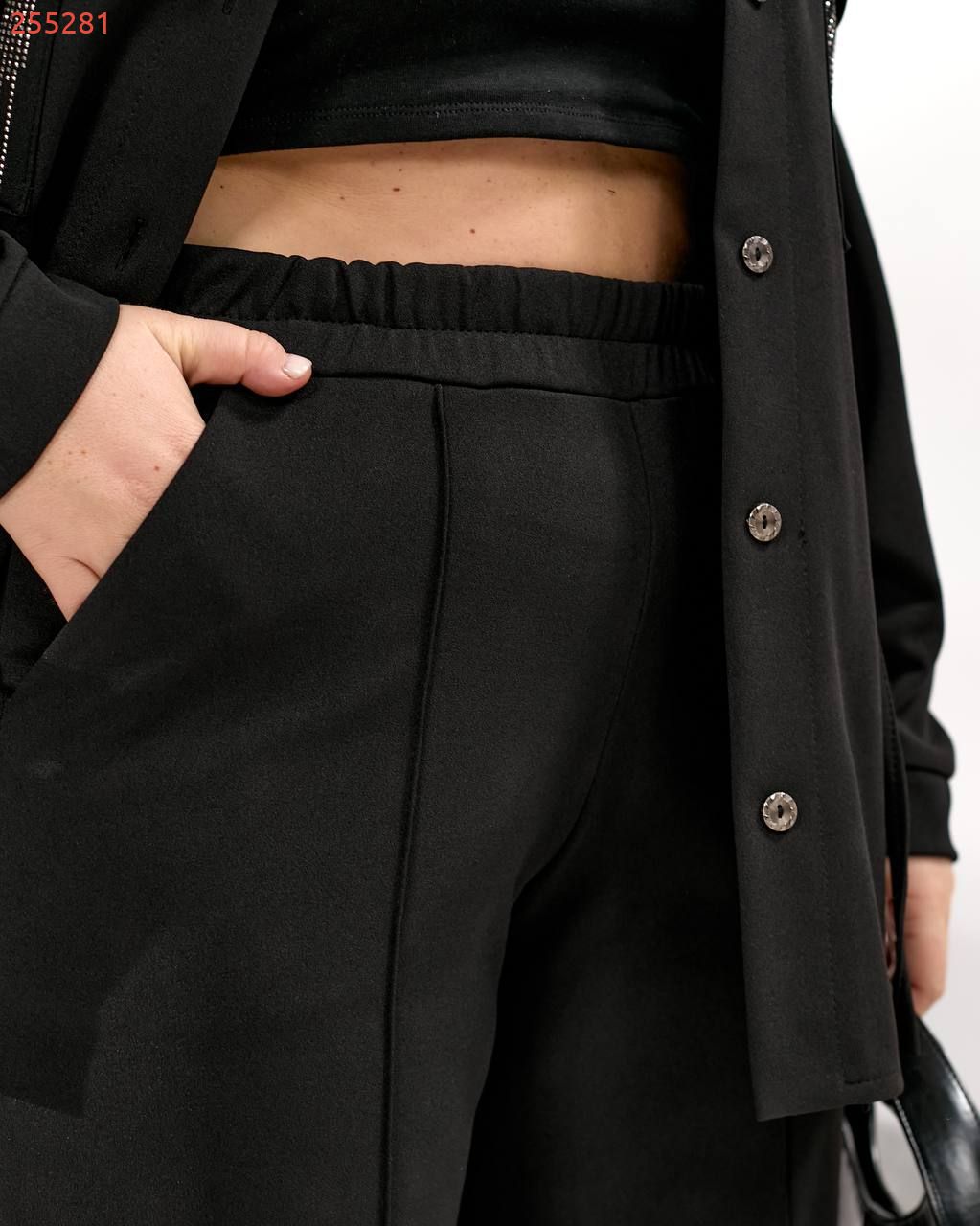 Ідеальний тандем комфорту та елегантності в одній моделі. Виконаний з якісного креп-дайвінгу – тканини, яка м'яко струмує, не мнеться і бездоганно тримає форму весь день.