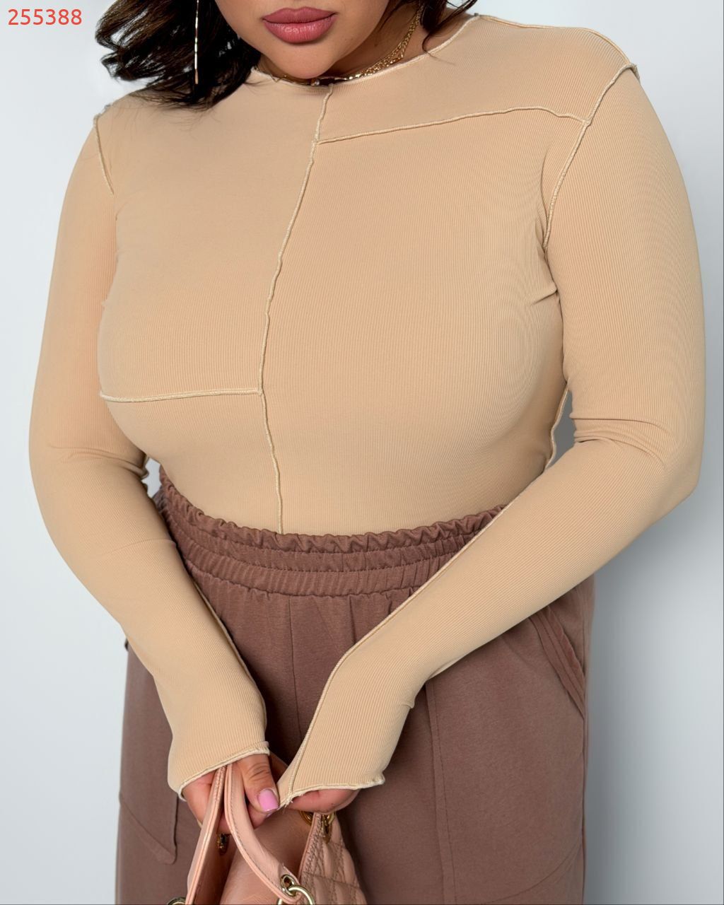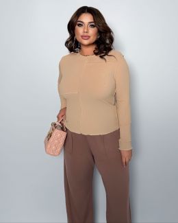 Весняний прогулянковий костюм, Лонг+штани. Лонг з довгим рукавом, асиметричний, ефект необроблених країв і швів назовні.