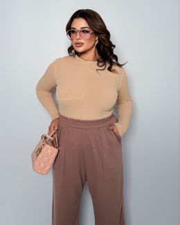 Тканина: лонг Трикотаж білизняний. Штани стиль спорт, з ефектом необроблених країв, на поясі гумка, спереду функціональні кишені Тканина двонитка