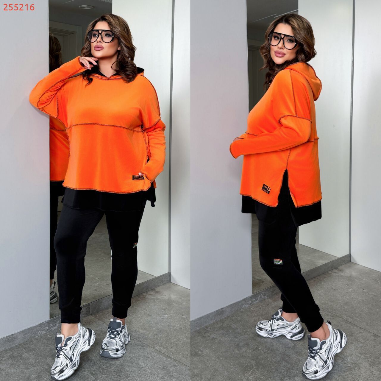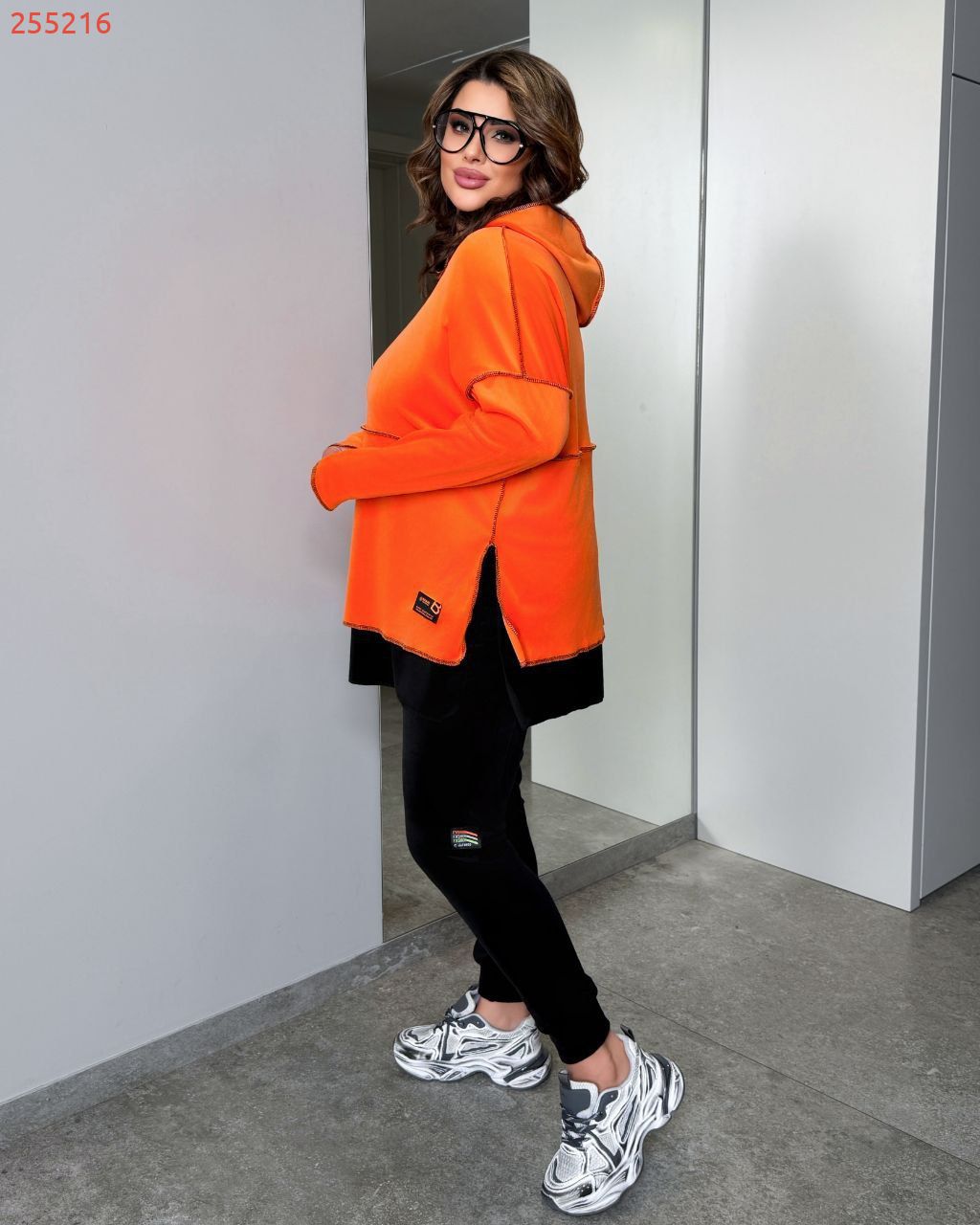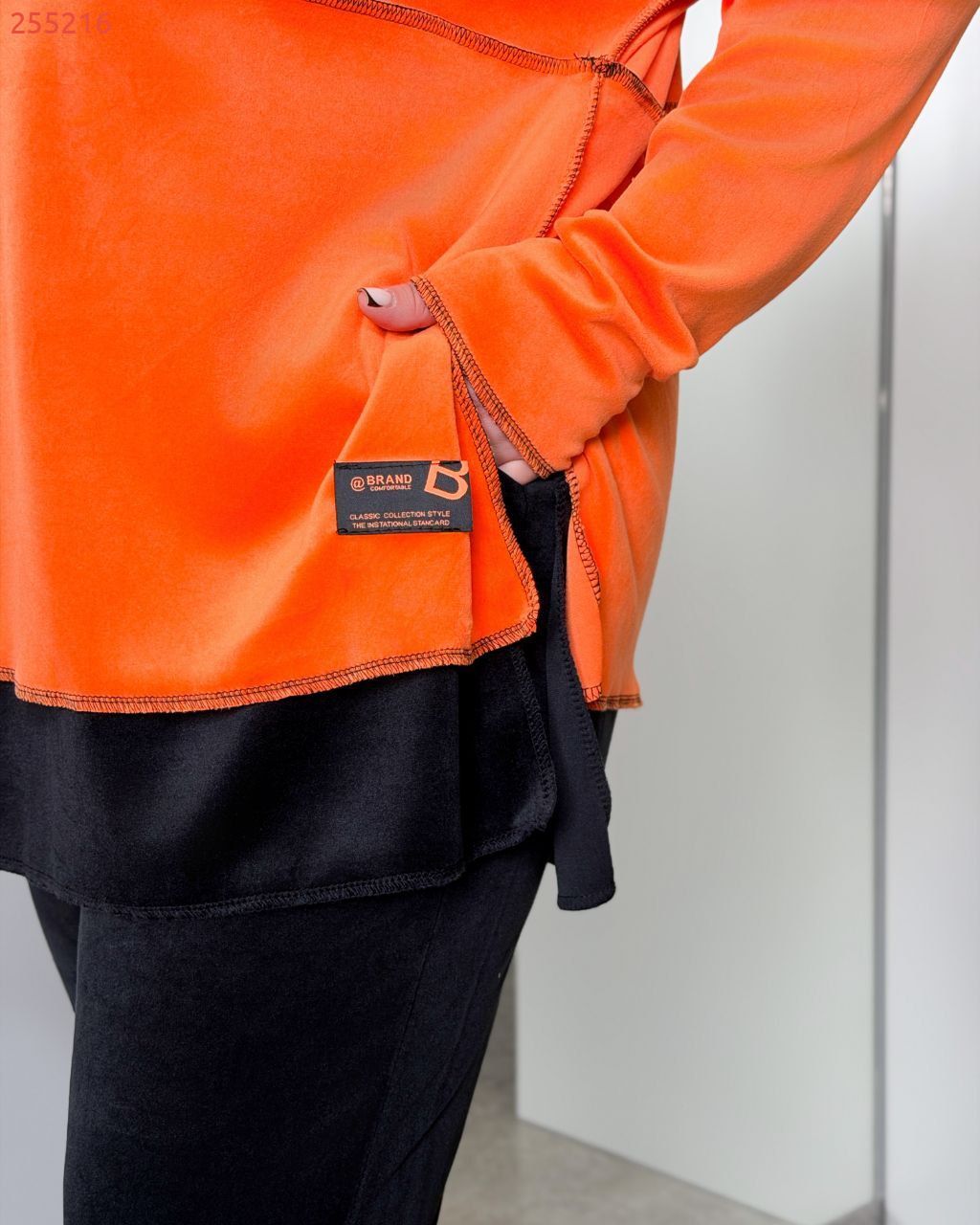 Стильний костюм виготовлений з якісного велюра, цікавий крій. Тканина м'яка та приємна до тіла. Туніка вільного крою, штани 7/8 на манжеті, висока посадка, кругова резинка. Якісні лекала.