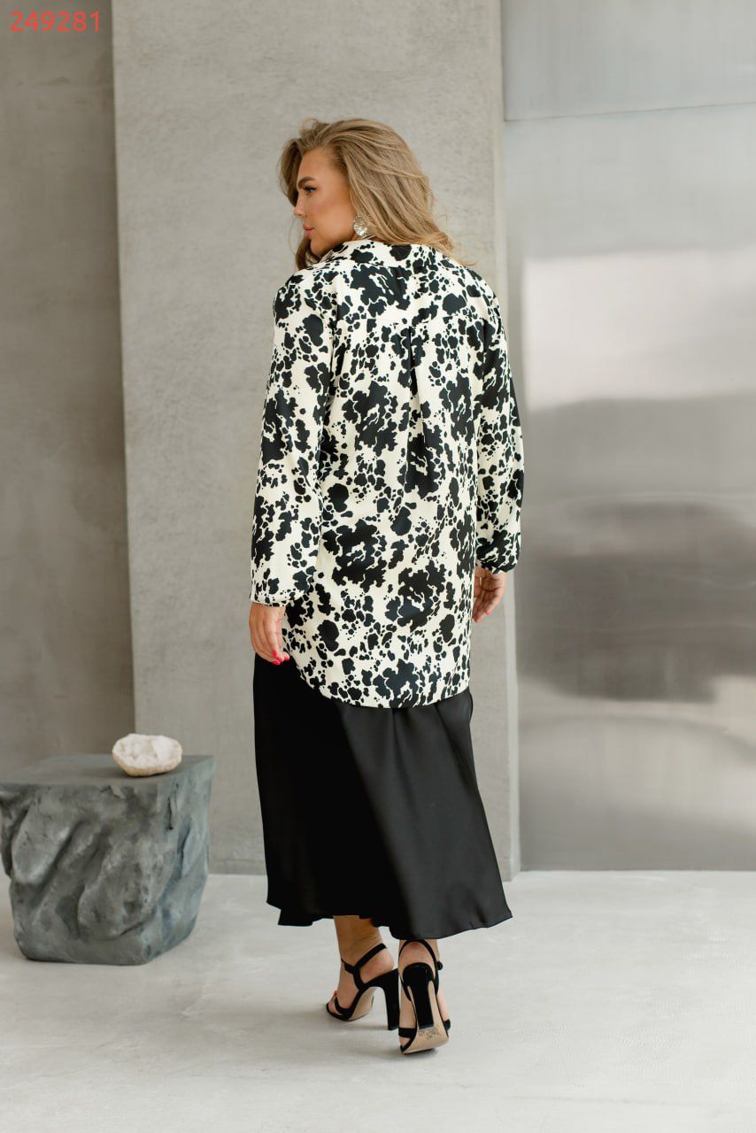 Ця класична сорочка випромінює елегантність та вишуканість, що робить її незамінним елементом гардеробу. Її м'яка, гладка текстура делікатно торкається шкіри, створюючи відчуття розкоші і комфорту. Класичний комір додає образу строгості та елегантності, підкреслюючи бездоганний стиль. Сорочка застібається на ґудзики, що йдуть рівною лінією спереду, додаючи образу завершеності. Спереду є зручна кишенька, яка поєднує в собі практичність та стильний акцент. Фасон, де передня частина сорочки трохи коротша за задню, додає сучасного вигляду та дозволяє експериментувати з силуетами, створюючи стильні, багатошарові образи. Ця сорочка чудово поєднується як з класичними брюками та спідницями, так і з джинсами для більш розслабленого луку. Вона втілює в собі гармонію класики та сучасності, роблячи кожен ваш день трохи більш витонченим.