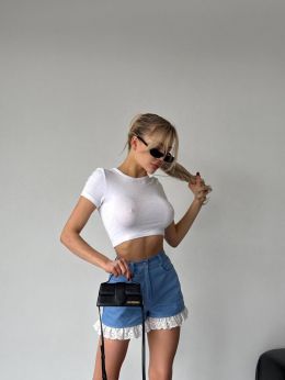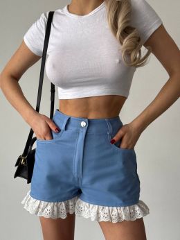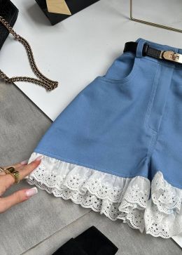 Жіночі шорти з рюшами - ідеальне поєднання стилю та комфорту для вашого гардеробу. Виготовлені з джинсової тканини,які забезпечують максимальний комфорт під час носіння. Романтичні рюши додають жіночності та шарму, роблячи ваш образ ніжним та стильним.Ідеальна посадка ,підкреслить ваші форми. Ці шорти - чудовий вибір для прогулянок, зустрічей з друзями чи відпочинку на пляжі.