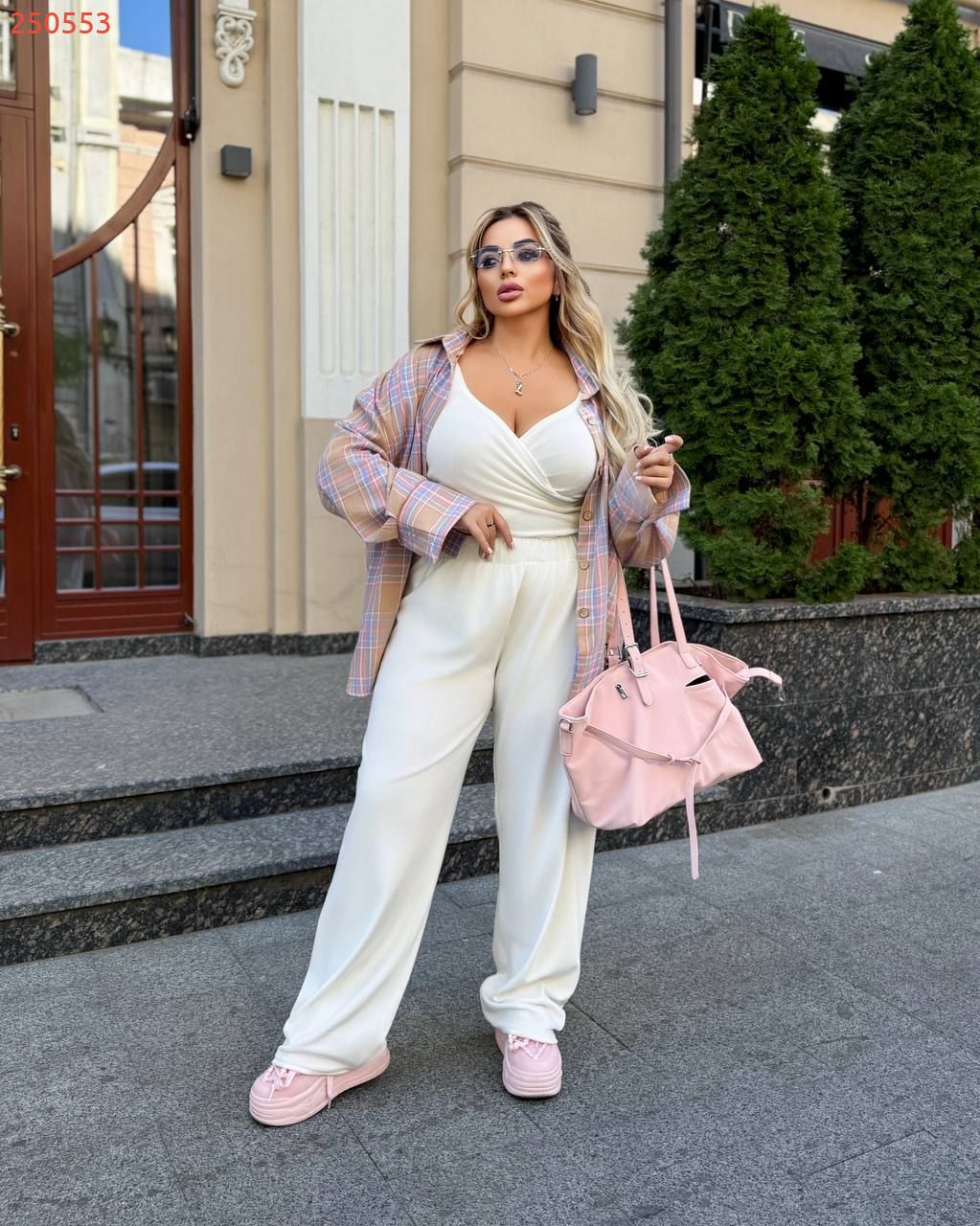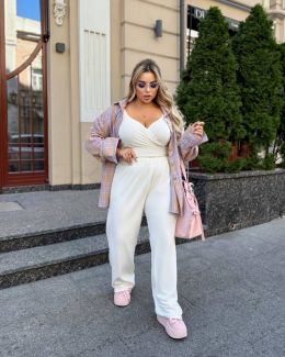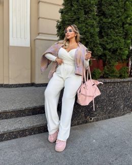 Не мнеться . Брюки високої посадки , талія на резинці, кишені.
