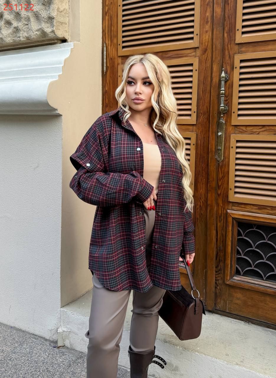 Стильна сорочка в клітинку зі відстібними рукавами.Сорочка трансформер.Рукава на кнопці.