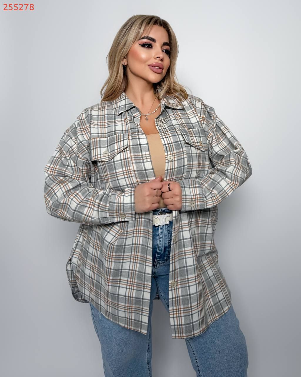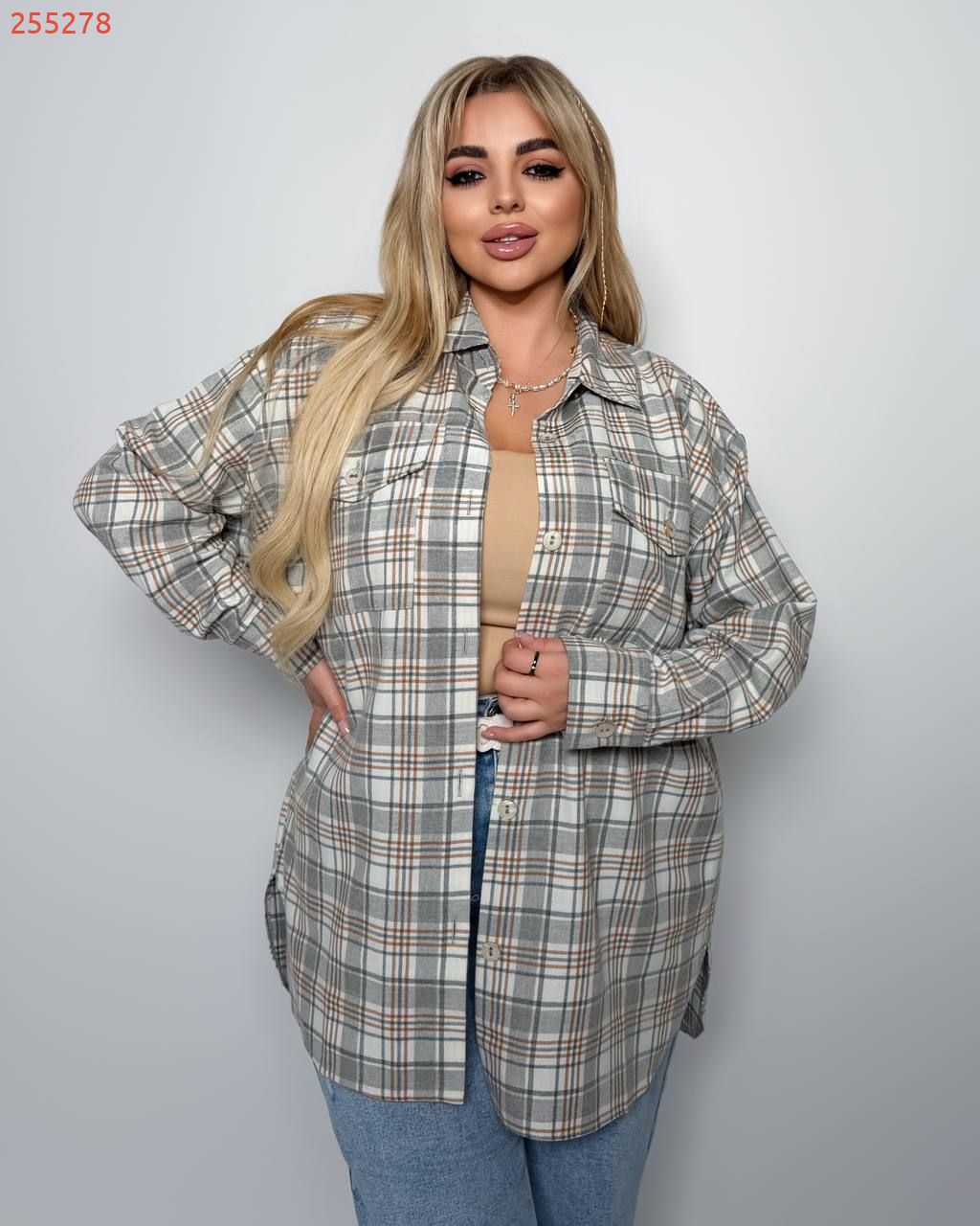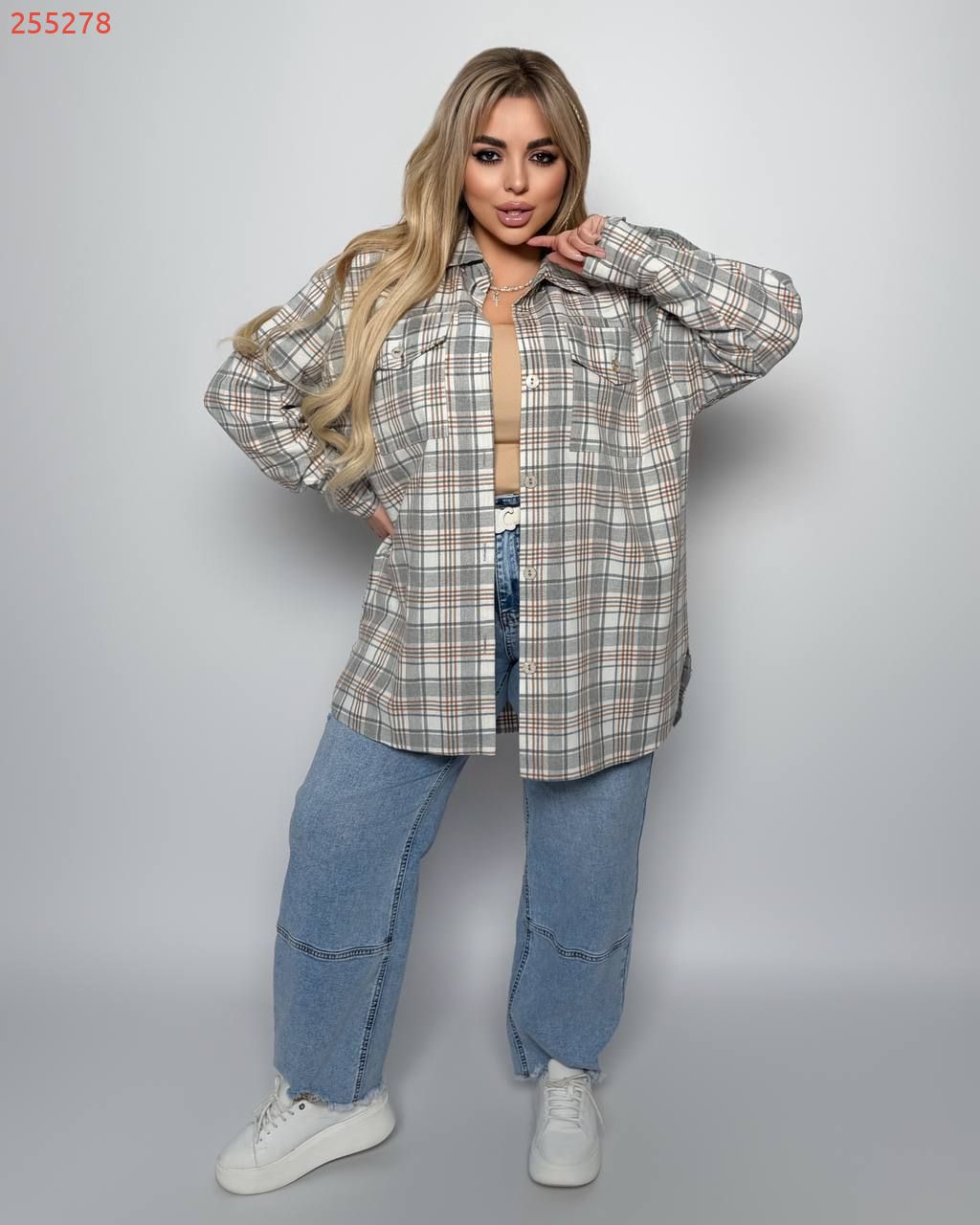 Комфортна універсальна сорочка з кишенями на гудзиках, з розрізами з боків. Позаду трохи довше.