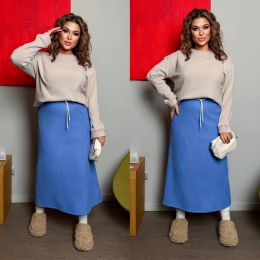 Тепла спідниця на холодну пору , покрою трапеція , талія на резинці та шнурку .
